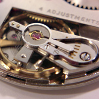 | späte Variante, aber sinnvoll: Regulierung mit beweglichem Rückerhebel und Spiralklötzchen | Auf der Grundplatine, unterhalb der Unruh findet sich die Signatur "AS1130" |