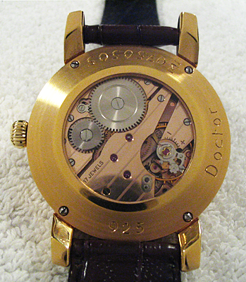 "Doctor“ Werk AS 1560 rose von mir auf dezentrale Anzeige umgerüstet, 17 Steine, Incabloc stossgesichert, Stahlspirale, Feinregulierung, Zifferblatt: massiv 925/000 Sterlingsilber Breguet - Stahlzeiger gebläut Gehäuse: massiv 925/000 Sterlingsilber 750/000 Gelbgold hartvergoldet, zweiteilig, Durchmesser 41.5 mm, Mineralgläser beidseitig, Glasboden verschraubt Bandanstoss: 20mm Amband: echt Louisiana Aligator Dornschließe: massiv 925/000 Sterlingsilber 750/000 Gelbgold hartvergoldet