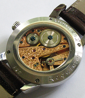 " Regulator “ AS 1130, Incabloc, 17 Steine, Handaufzug, Schraubenunruh, Stahlspirale flach, Werk veredelt, auf Regulatoranzeige umgerüstet, Brücken und Kloben handgraviert und rose vergoldet, Werkschrauben handgebläut, Zifferblatt: massiv 925/000 Sterlingsilber mattiert, Breguet - Stahlzeiger gebläut, Gehäuse: massiv 925/000 Sterlingsilber poliert, zweiteilig, beidseitig Mineralgläser, Gehäuseboden geschraubt, Bandanstoss: 18 mm, Armband: Louisiana Alligator mit Dornschliesse massiv 925/000 Sterlingsilber
