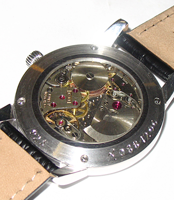 Werk: Buren Caliber 1281 Intramatic 30 Steine, Incabloc stossgesichert, Isochron Rückerfeinstellung, Mikrorotor beidseitig aufziehend, Zifferblatt: 925/000 Sterlingsilber mit arabischen Zahlen, Datum bei 3, polierte, gebläute Breguet Stahlzeiger, Gehäuse: 925/000 Sterlingsilber, zweiteilig, geschraubter Boden mit Mineralglas, Bandanstoss: 18mm Armband: Louisiana Aligator Dornschliesse 925/000 Sterlingsilber