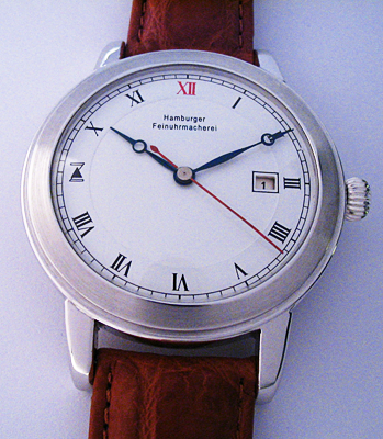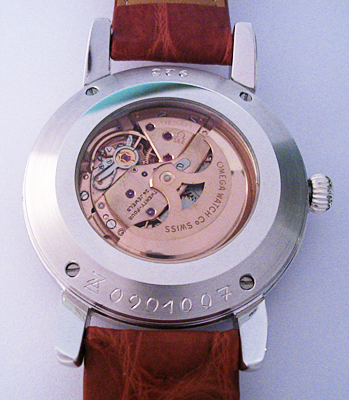 "Automatic" Werk: OMEGA Caliber 562 Nr.17236673 24 Steine, Incabloc stossgesichert Zifferblatt: massiv 925/000 Sterlingsilber Breguet Zeiger Stahl gebläut Gehäuse: zweiteilig, massiv 925/000 Sterlingsilber, poliert, Lünette mattiert Mineralgläser beidseitg, Boden verschraubt Bandanstoss: 20mm Armband:echt Aligator mit Dornschliesse 925/000 Sterlingsilber |