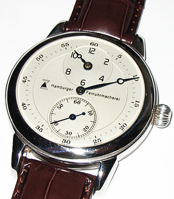 " Regulator “ Werk:AS 1130, 17 Steine, Incabloc, Schraubenunruh, Stahlspirale flach, Werk veredelt, auf Regulatoranzeige umgerüstet, Brücken und Kloben handgraviert und gelb vergoldet, Werkschrauben handgebläut, Zifferblatt: massiv 925/000 Sterlingsilber Breguet - Stahlzeiger gebläut, Gehäuse: massiv 925/000 Sterlingsilber poliert, zweiteilig, beidseitig Mineralgläser, Gehäuseboden geschraubt Bandanstoss: 18 mm Armband: Louisiana Aligator mit Dornschliesse massiv 925/000 Sterlingsilber
