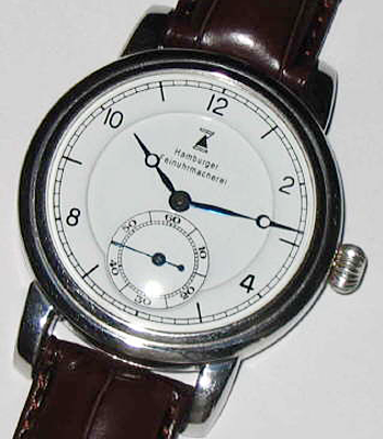 Armbanduhr Hamburger Feinuhrmacherei "Basis" Werk: AS 1130, Incabloc stossgesichert, 17 Steine, fein dekorierte Brücken und Kloben mit Genfer Streifen, handgebläute Schrauben , Zifferblatt: 925/000 Sterlingsilber, Emailelack weiss, |