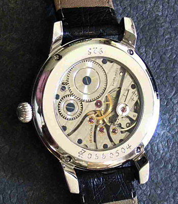 "Basis" Werk: AS 1130, Incabloc stossgesichert, 16 Steine, fein dekorierte Brücken und Kloben mit Genfer Streifen, polierte und handgebläute Schrauben Zifferblatt: 925/000 Sterlingsilber Emaillelack weiß Gehäuse: 925/000 Sterlingsilber poliert und rhodiniert, zweiteilig mit geschraubtem Glasboden Bandanstoss: 18mm Armband: echt Strauss mit Dornschliesse 925/000 Sterlingsilber